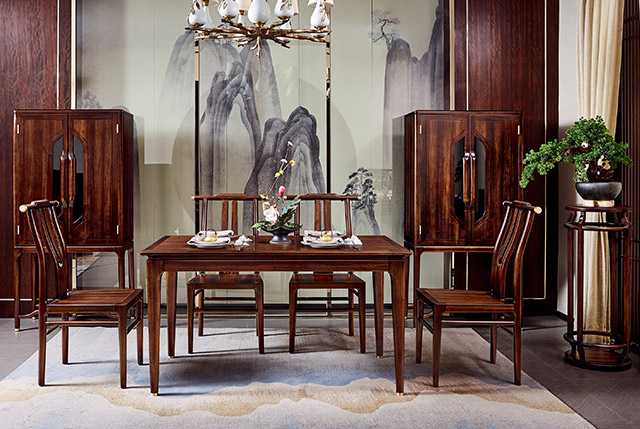 新中式風(fēng)格在設(shè)計上延續(xù)了明清時期家居配飾理念,提煉了其中經(jīng)典元素并加以簡化和豐富,在家具形態(tài)上更加簡潔清秀,同時又打破了傳統(tǒng)中式空間布局中等級、尊卑等文化思想,空間配色上也更為輕松自然。